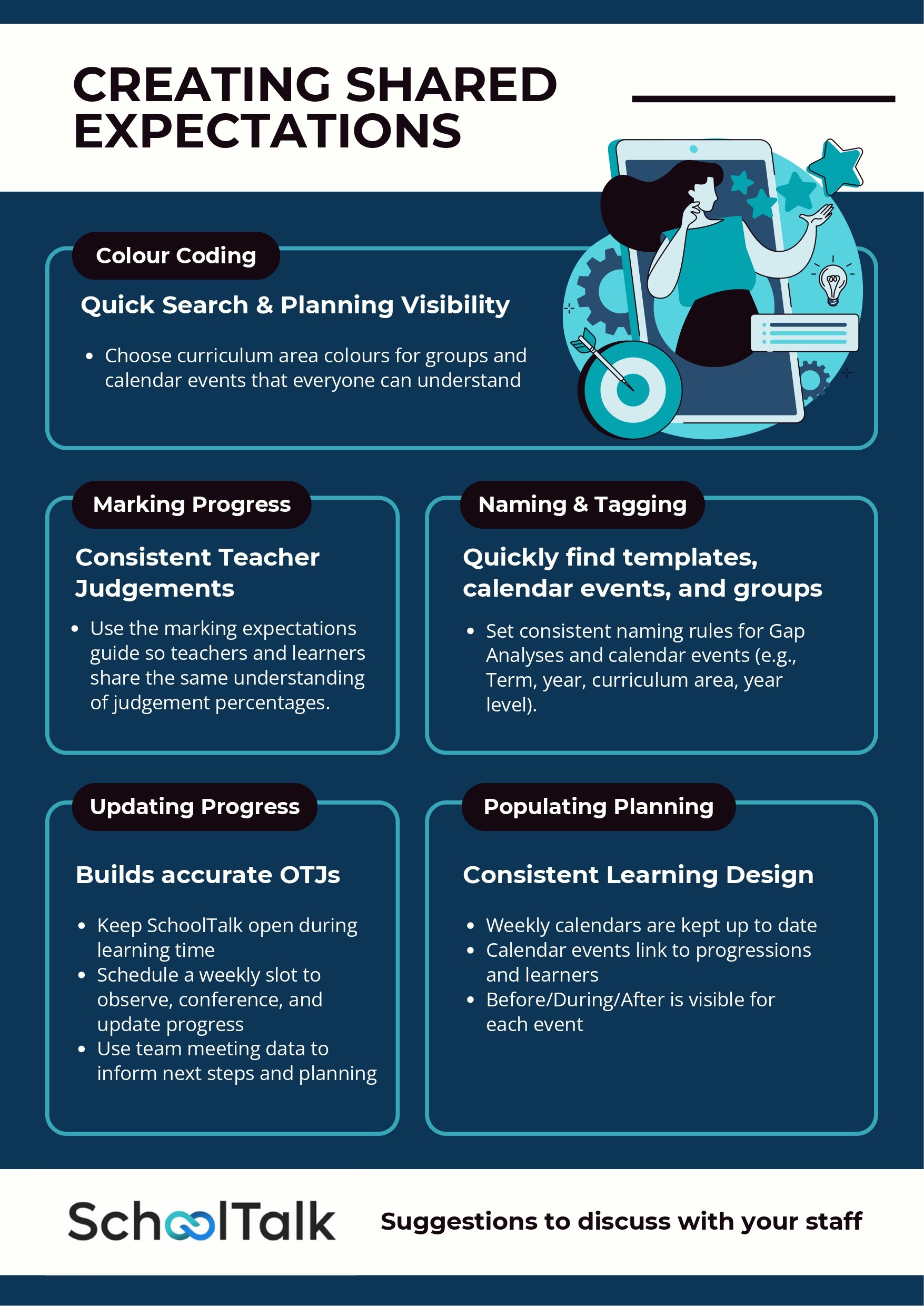 Helpful reference guides designed to support consistent practice, smooth workflows, and confident use of SchoolTalk across classrooms and teams.